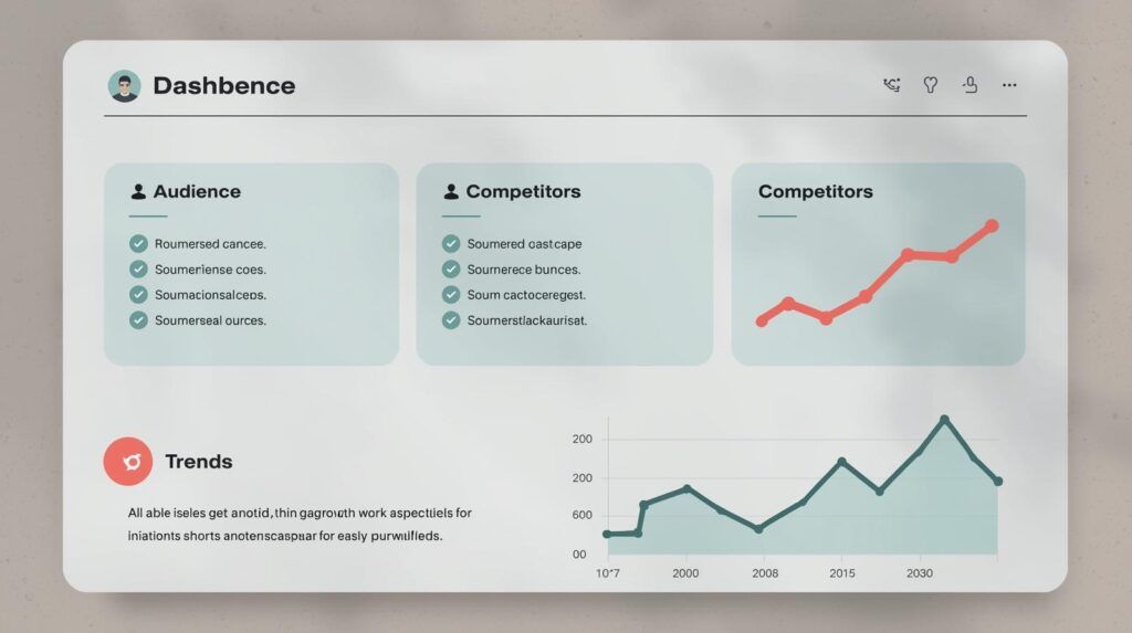 Know your audience and the landscape. Sketch a simple persona (age range, interests, habits, pains). List 3–5 competitors and where they’re strong or weak. Note a few trends you see in groups, search results, or reviews. This prevents you from building in the dark and reveals quick wins you can act on.